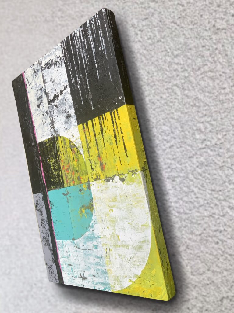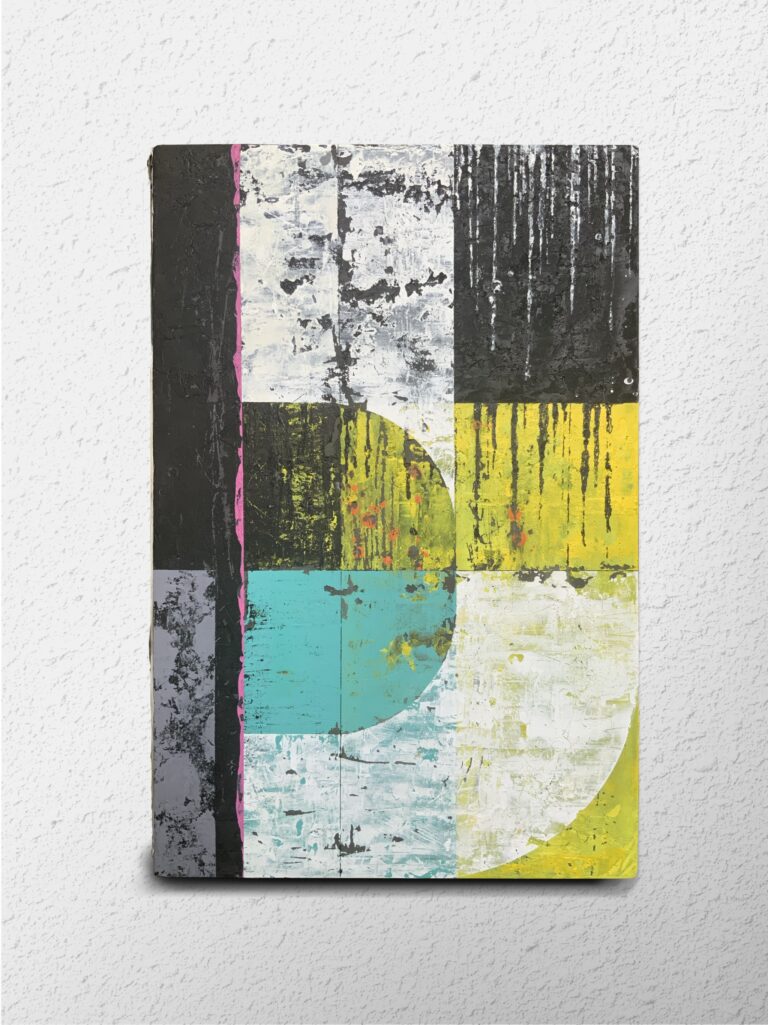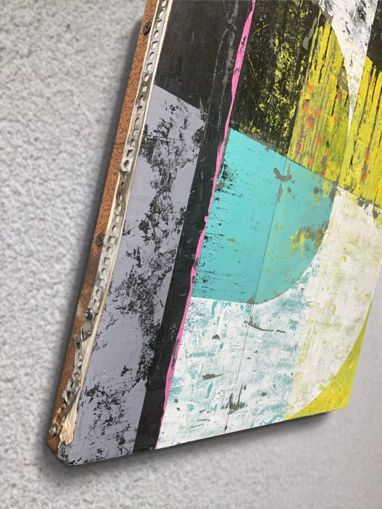 60x40x03 cm. Acrylic, spray paint and found materials on cradled wood panel.