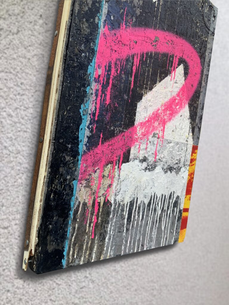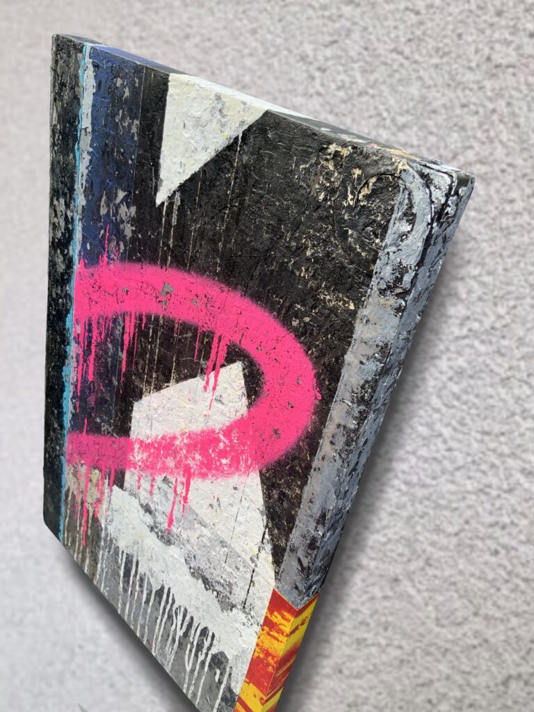60x61x03 cm. Acrylic and spray paint on cradled wood panel.